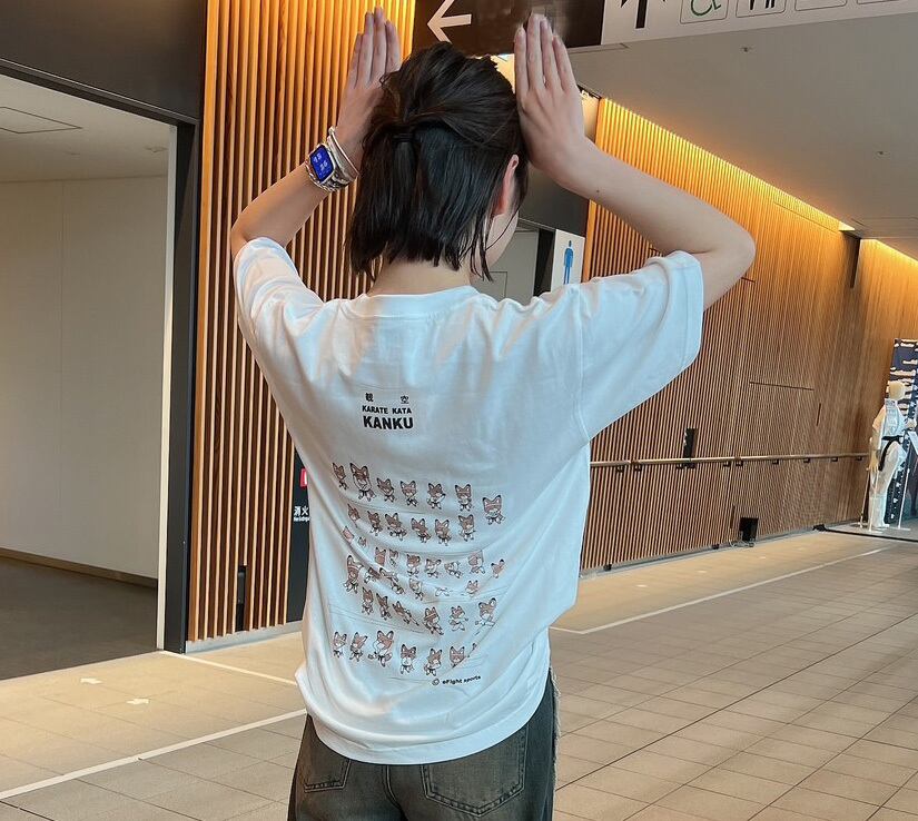 On the front, KANKU showcases the iconic move of Kanku kata. On the back, KANKU appears in a judo uniform performing all 34 movements of the Kanku form. This unique and charming design is perfect for those interested in Japanese culture—including women and children.